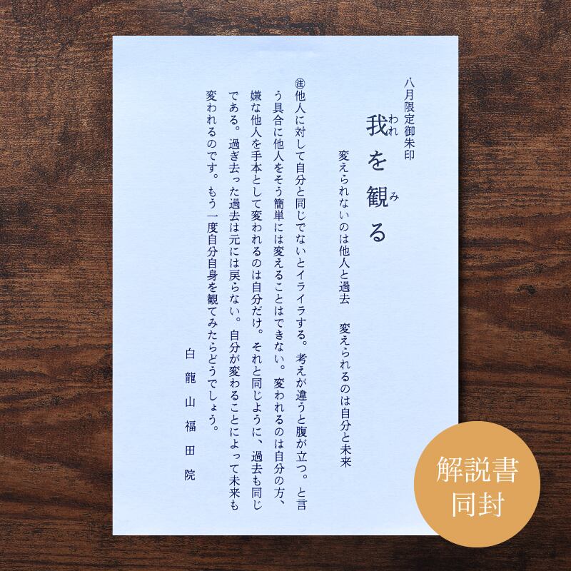 八月限定御朱印「我を観る」白龍山福田院オリジナル御朱印